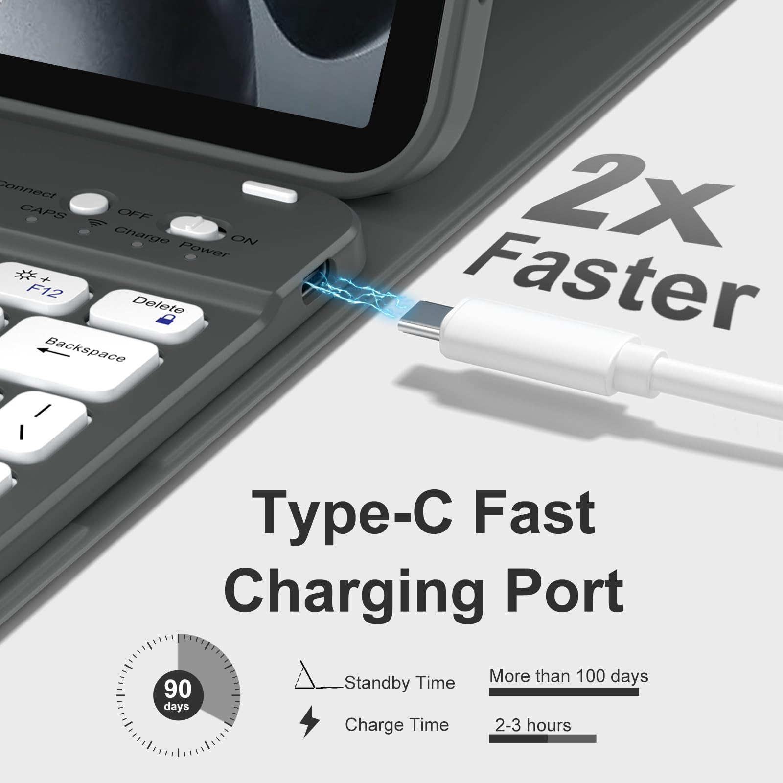 Drivego Keyboard Casefor iPad A16 11th/10th Genration (2025/2022 11/10.9 Inch) with Pencil Holder, Anti-fall Keycaps Detachable Bluetooth Keyboard Cover for iPad 10/11, QWERTY UK Layout, SpaceGrey